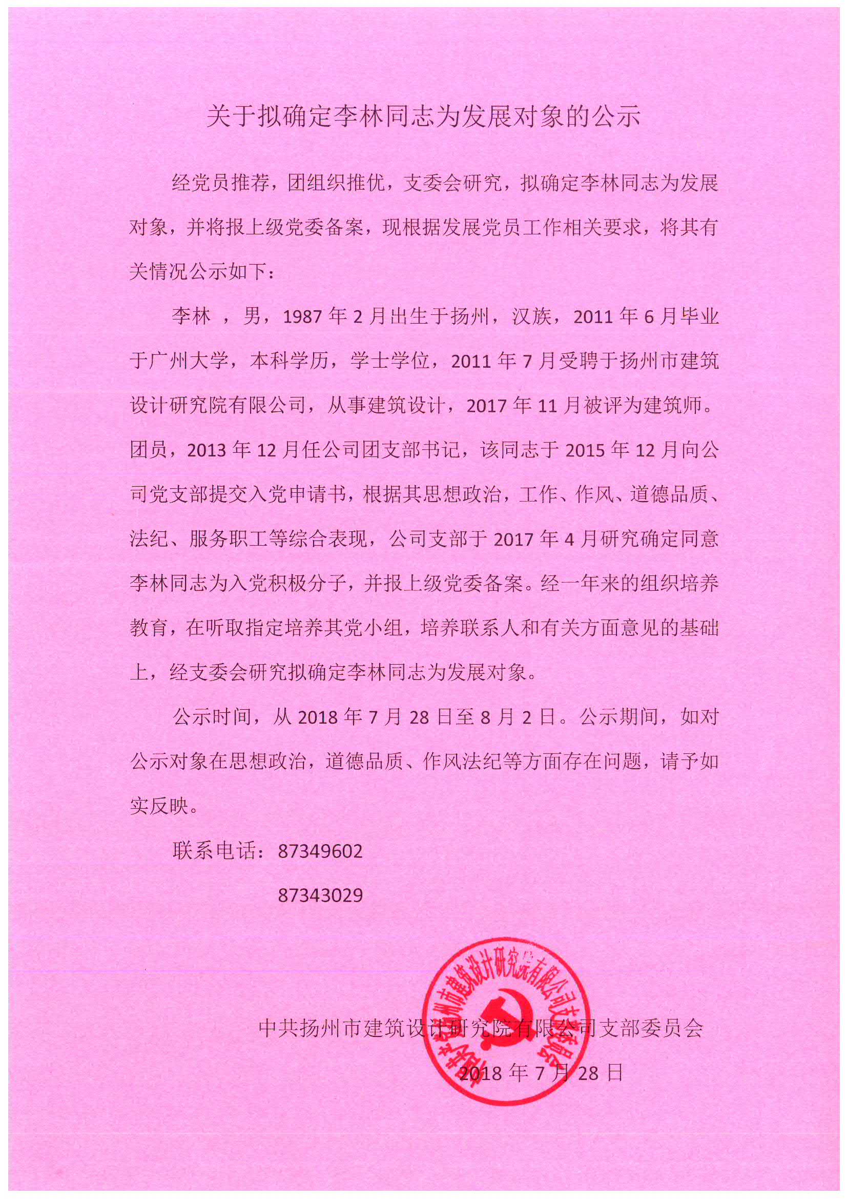 關(guān)于擬確定李林同志為發(fā)展對(duì)象的.. |